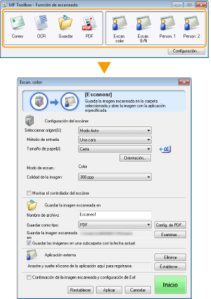 [Mostrar el controlador del escáner]