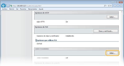Seleccione la casilla de verificación para utilizar el servidor proxy especificado para la comunicación con un servidor HTTP.