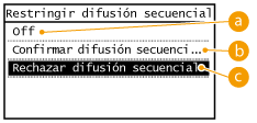 Seleccione <Confirmar difusión secuencial> o <Rechazar difusión secuencial>.