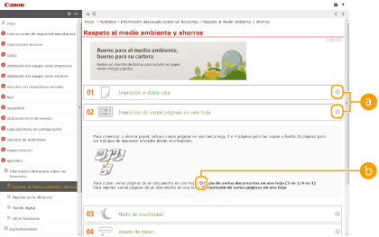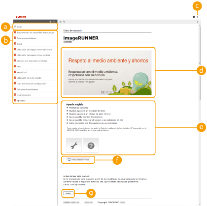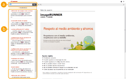 Haga clic para mostrar información sobre cómo ver el e-Manual, cómo realizar una búsqueda y otra información.