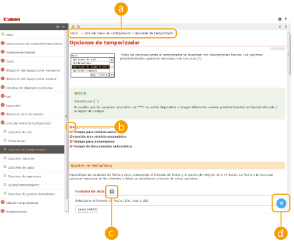El e-Manual se divide en diferentes pantallas y el contenido de cada pantalla varía.