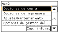 Todas las opciones sobre la copia se muestran con descripciones breves. Las opciones predeterminadas aparecen marcadas con una cruz (