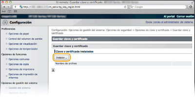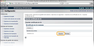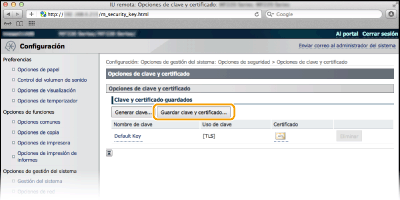 Haga clic en [Guardar clave y certificado] o [Guardar certificado de CA].