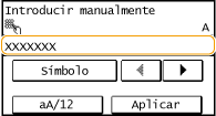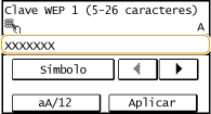 Introduzca la clave de red utilizando las teclas numéricas, y pulse <Aplicar>. Introducción de texto