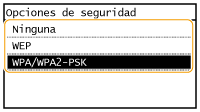 ![]() Cuando esté seleccionado <Sistema abierto> Al realizar la conexión a una red inalámbrica, el equipo producirá un error de autenticación si la autenticación de la clave compartida está establecida en el router inalámbrico. Si esto sucede, el equipo cambiará automáticamente la opción a <Clave compartida> y reintentará la conexión. |