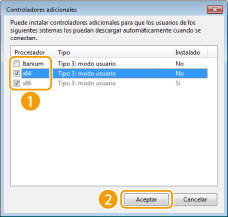 Seleccione la casilla de verificación de la arquitectura de bits que estén utilizando el resto de ordenadores y haga clic en [Aceptar].