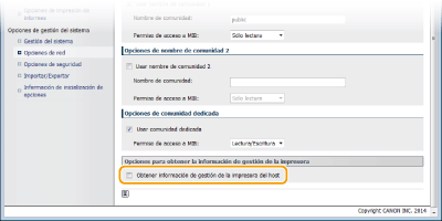 Especifique las opciones de adquisición de información de gestión de la impresora.