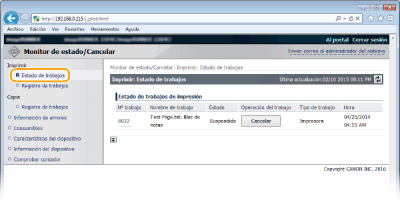 Puede eliminar un trabajo haciendo clic en [Cancelar].