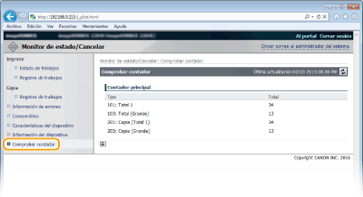 Consulta del número total de páginas impresas