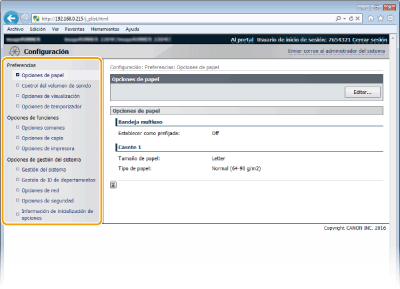 Algunas opciones requieren que inicie en primer lugar una sesión en el modo de Administrador del Sistema antes de poder cambiarlas.