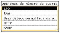 Los puertos sirven como extremos para establecer la comunicación con otros dispositivos. Normalmente, los números de puerto convencionales se utilizan para los principales protocolos, pero los dispositivos que utilizan estos números de puerto son vulnerables a ataques debido a que estos números de puerto son muy conocidos. Para mejorar la seguridad, el administrador de red puede cambiar los números de puerto. Cuando se modifica un número de puerto, el nuevo número debe compartirse con los dispositivos de comunicación, como es el caso de los ordenadores y los servidores. Especifique las opciones del número de puerto en función de su entorno de red.