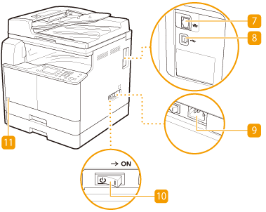 将本机连接到有线局域网路由器等时请连接局域网电缆。有关连接步骤,请参阅“入门指南”。