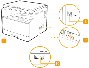 在连接本机和计算机时请连接 USB 电缆。有关连接步骤,请参阅“入门指南”。