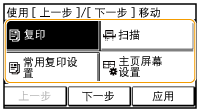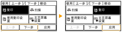 轻触 <上一步> 或 <下一步> 以移动按钮,然后轻触 <应用>。