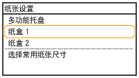 必须根据装入的纸张指定纸张尺寸和类型设置。装入的纸张与先前装入的纸张不同时,请务必改变纸张设置。也可以为多功能托盘注册默认纸张尺寸和纸张类型,如果总是在多功能托盘中装入相同尺寸和类型的纸张,该设置很方便。