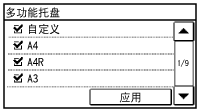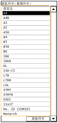 会在<纸张尺寸(其他尺寸)>画面中显示未勾选的纸张尺寸。