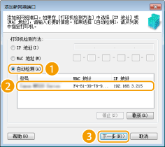 单击 [自动检测],当检测到本机时选择本机,然后单击 [下一步]。