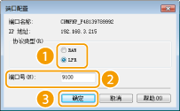 在 [协议类型] 中单击 [LPR] 或 [RAW] 单选按钮,根据需要更改 [端口号] 文本框中的号码,然后单击 [确定]。