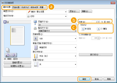 指定份数和打印方向等打印设置,然后单击 [确定]。