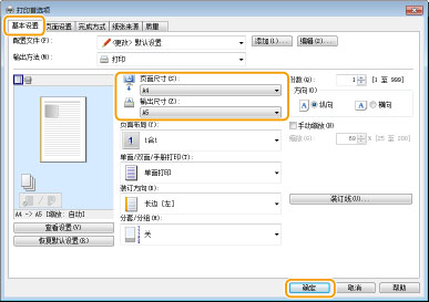 在 [输出尺寸] 中选择纸张尺寸