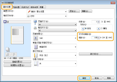 可以使用A5至A4等预设打印倍率或者使用以 1% 为增量设置的自定义打印倍率放大或缩小打印件。