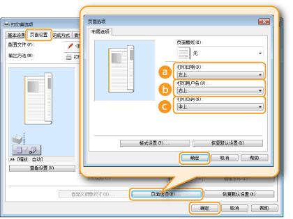 打印日期、登录名或页码时,可以改变字体和字号等详细格式信息。在上面的页面选项画面上单击 [格式设置] 可指定详细信息。