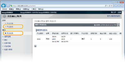 显示打印或复印的记录。每次最多可查看最近的 50 个作业。
