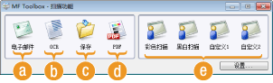 扫描的文档可以保存到计算机,也可以转发到指定的应用程序对其进行编辑,或添附到电子邮件信息中。MF Toolbox 可以对每个目的进行预设,包括转换为 PDF 以及彩色扫描。轻松选择一个预设即可进行扫描。