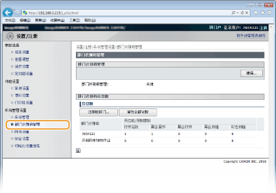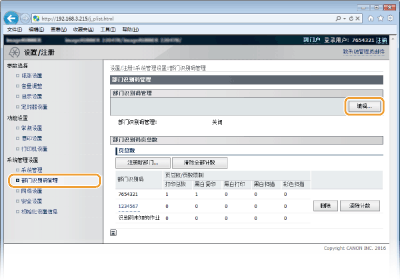 选择 [使用部门ID管理] 复选框,然后单击右侧的 [设置]。