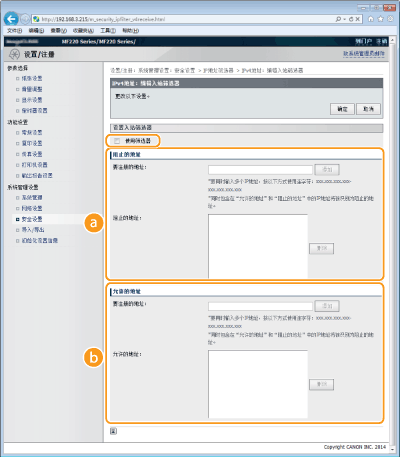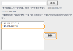 指定用于防火墙规则的 IP 地址(imageRUNNER 2204AD / 2204TN / 2204N)