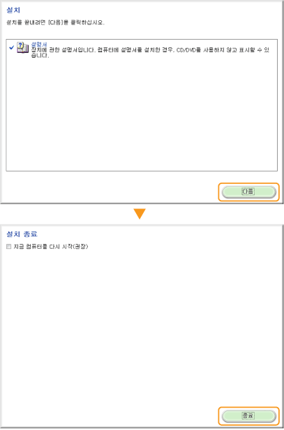 기기와 함께 제공되는 CD-ROM/DVD-ROM을 사용하여 컴퓨터에 전자설명서를 설치합니다. 설명서를 포함하는 CD-ROM/DVD-ROM의 라벨은 국가/지역 또는 기기의 모델에 따라 다를 수 있습니다.