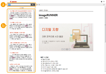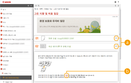 전자설명서를 보는 방법, 검색을 수행하는 방법 및 기타 정보를 표시하려면 클릭합니다.