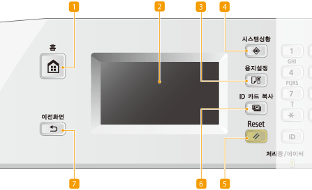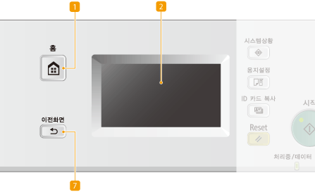 현재 작업의 상태를 확인하거나 사용 기록을 보려면 누릅니다. 남은 용지 및 토너량, 에러 발생 여부와 같은 기기의 상태를 확인할 수도 있습니다.