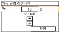 기기가 자동으로 슬립 모드로 진입하기 전 경과 시간 설정
