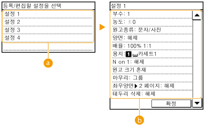 <즐겨찾기 설정> <삭제> 를 누르고 설정 <예>을 선택합니다.등록한 설정을 사용하려면 <복사>