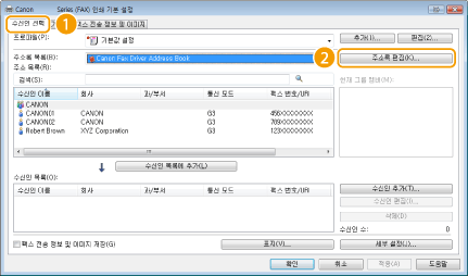 등록된 수신인을 변경하거나 삭제하려면 [주소록]에서 수신인을 선택하고 [편집] 또는 [삭제]를 클릭합니다.