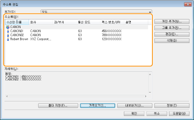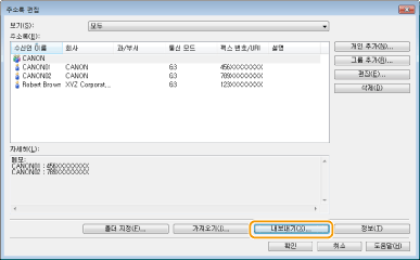 팩스 드라이버에서 주소록 데이터 가져오기/내보내기
