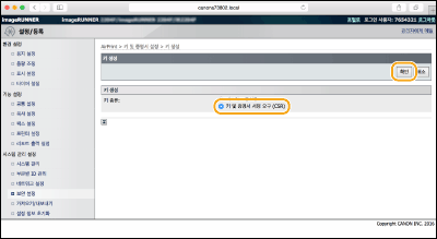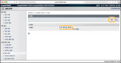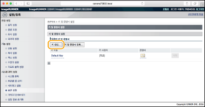 TLS(Transport Layer Security )를 통한 암호화된 통신에 필요한 경우 기기에서 키 쌍을 생성할 수 있습니다. AirPrint를 사용하기 위해 Apple 기기에서 액세스할 때 TLS를 사용할 수 있습니다. 최대 5개의 키 쌍을 기기에 등록할 수 있습니다.