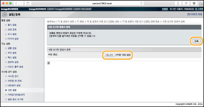 [파일 선택]을 클릭하고 인증서 서명 요구에 대한 파일을 지정한 후 [등록]을 클릭합니다.