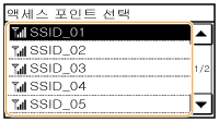 보안 설정무선 라우터를 선택하여 무선 연결을 설정하면 WEP 인증 방법이 <오픈 시스템>으로 설정되거나 WPA/WPA2 암호화 방법이 <자동>(AES-CCMP 또는 TKIP)으로 설정됩니다. WEP 인증에 대해 <공유키>를 선택하거나 WPA/WPA2 암호화에 대해 <AES-CCMP>를 선택하려면 수동 입력 방법을 사용하여 연결을 설정해야 합니다(세부 설정을 지정하여 연결 설정).