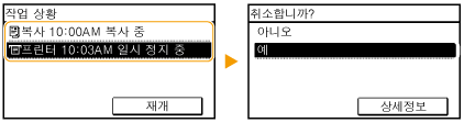 <복사/인쇄 작업 상황> 화면에서 문서 선택