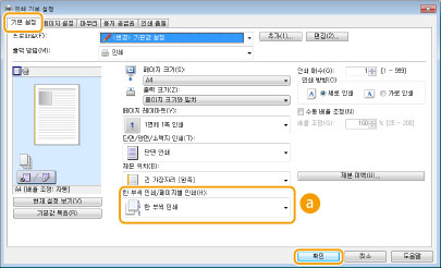 [해제]를 선택한 경우 출력물이 한 부씩 인쇄되는지 여부는 응용 프로그램의 설정에 따라 달라집니다.
