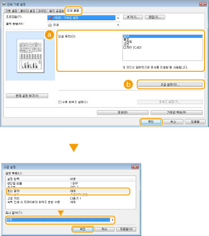 [고급 설정] 화면에서 [토너 절약] 선택