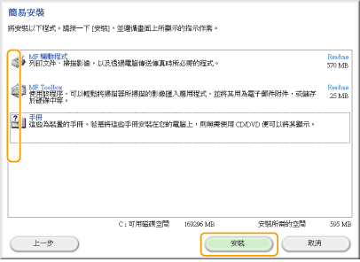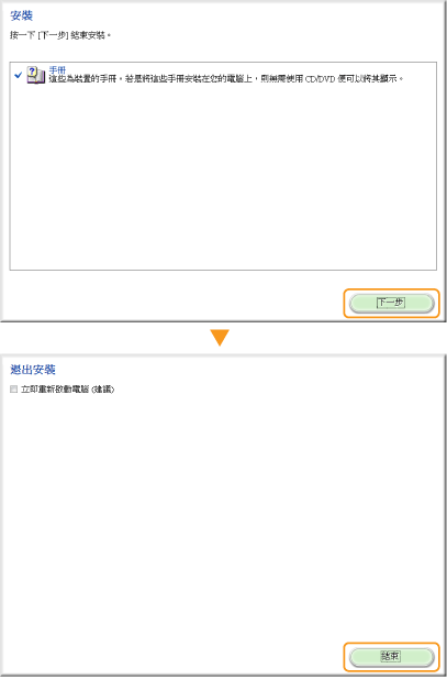 清除 [手冊] 以外的所有核取方塊,然後按一下 [安裝]。