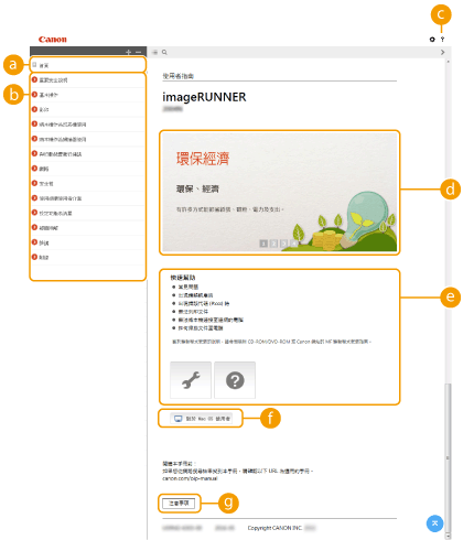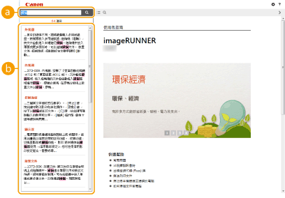 按一下以顯示如何檢視電子手冊的資訊、如何執行搜尋的資訊,以及其他資訊。