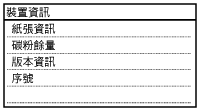 顯示本機狀態,如剩餘的紙張數量或碳粉量。