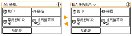 顯示 <收到通知。> 或 <按右邊的圖示->> 時