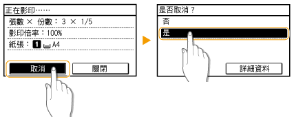 後立即取消影印,請選擇畫面上的 <取消>,或是點選控制面板上的