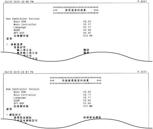 使用者資料清單不包含 <網路設定> 和 <系統管理設定> 的設定資訊。若要檢查所有設定項目,請列印系統管理資料清單。