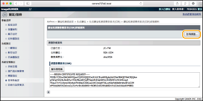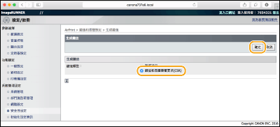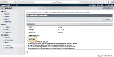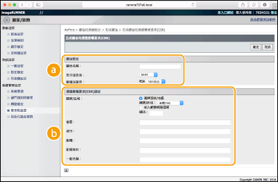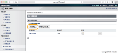 如果將 [簽章演算法] 選擇為 [SHA384] 或 [SHA512],鍵值長度不能選擇為 [512位元]。